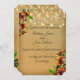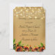 Este convite do casamento tem um tema rústico do girassol. Na parte dianteira direita superior esquerdo e mais baixa é uma imagem tomada de uma fotografia de girassóis bonito da laranja e do ouro. Uma corda de luzes feericamente de incandescência do branco adiciona à sensação etéreo. Tudo em um fundo de tons do sepia do tan claro com leve um tipo borda da mancha do chá do escurecimento. Na parte traseira realizam-se as estatísticas a respeito do lugar e da época da cerimónia com o mesmo fundo e uma beira dos girassóis na parte inferior do cartão e das cordas das luzes na parte superior. Todo o texto pode ser mudado. Você pode mudar o fraseio, a pia batismal e a cor e o tamanho da parte dianteira e da parte traseira da pia batismal. Os artigos de harmonização estão em minha do "coleção do casamento girassol".