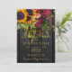 Modelo de na moda de convite para chá de panela de campo russo sobre madeira marrom-escura apresentando grandes girassóis de ouro amarelo e buquês vermelho-burgundy, cordas de luzes cintilantes e um falso roteiro de tipografia de ouro. +++++++++++++++++ Fácil de personalizar com seus detalhes! Você pode personalizá-lo alterando ainda mais as fontes e as cores das letras. +++++++++++ O convite é adequado para festas de jardim ao ar livre / quintal rústico de jardim / brunch / barbecue bridal.