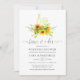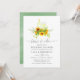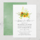 Convite de festa de engajamento de degustação de vinho de girassol pintado à mão na moda/festa de casal/banho de noiva com fundo de lavagem de aquarela verde-sage para ensaio de casamento.