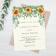 Um fundo de cor marfim decorado com girassóis, folhagem de eucalipto. Personalize e adicione seus nomes e detalhes da festa.