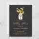 Convide familiares e amigos para o seu chá de casamento com este convite floral. Apresenta girassóis em jarro de pedras, borboletas e flores solares correspondentes, padrão floral em fundo de quadro negro. Personalize este convite rápido adicionando nomes, data, hora, local e outros detalhes do evento. Este convite aos girassóis é perfeito para o verão e chás casamentos outono.