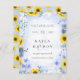 O cartão salva-vidas de casamento é bonito com girassol e rosa. Flores amarelas, azuis e brancas são versáteis para paletas poeirentas de azul, azul-céu, ouro e cor amarela. Águas frescas e vibrantes, flores silvestres, girassóis e rosas são perfeitos para qualquer estação.