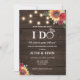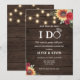 Convite de recepção de casamento de eu faço churrasco. Uma maneira casual de convidar os entes queridos para a recepção de casamento após fuga ou cerimônia privada. Com fundo de madeira de celeiro, girassóis, rosas vermelhas e luzes de corda.
