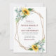 Um desenho floral de girassol com uma moldura geométrica com texto no meio.