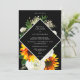 Coloque seus convidados no clima para se divertir com este convite de casamento de girassol e rosa branca. em preto