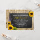 Um belo anúncio do funeral informando amigos e familiares dos detalhes do memorial dos seus entes queridos. Apresentando um fundo de madeira rústico, um quadro-negro vintage decorado com girassóis amarelos e lavandas roxas e o título "Em memória amorosa de". O elegante modelo usa uma combinação de texto branco tradicional e tipografia de script de caligrafia. É fácil personalizar simplesmente clicando nos detalhes do modelo ou, para obter mais alterações, clique em personalizar mais.