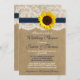 Este girassol com fita azul marinho em Kraft rústico e convites de chá de casamento branco vintage fará o anúncio perfeito para qualquer noiva e noiva! Esta design apresenta um girassol adorável com fita azul marinho sobre um fundo de efeito de papel russo Kraft com um trecho romântico de efeito de renda branca vintage. Esses convites podem ser personalizados para sua ocasião especial e farão o anúncio perfeito para qualquer casamento na praia, chá de panela, festa de noivado, festa de aniversário e muito, muito mais. *Por favor, note que Zazzle só vende convites impressos para que estes convites não tenham nenhum material de girassol, fita ou local real.