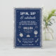 Erga um copo e gire o dreidel com este convite de Hanukkah elegante "Gire, Beba & Celebre". Com um fundo azul-marinho profundo com acentos de brilho prateado cintilante, este design combina tradição com um toque moderno. Um menorá cintilante ancorado no layout, rodeado por ícones festivos, incluindo um dreidel, um copo de vinho, Estrelas de Davi e floreios comemorativos. Perfeito para reuniões de adultos ou eventos comunitários animados, este convite define o tom para uma noite de alegria, jogos e companhia radiante.