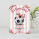This sporty-chic design features bold pink stripes paired with an adorable bow accent, creating the perfect mix of athletic energy and girly charm. Ideal for little soccer stars who love the game, this invitation sets the tone for a fun “Game Time” birthday celebration filled with goals, giggles, and team spirit.