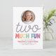 Convite Girls Cute Two Much Fun Rainbow Photo 2nd Birthday