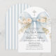 Convite Girl's First Holy Communion Dusty Blue Floral Bow