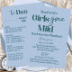 This Girls Gone Mild bachelorette beach weekend itinerary invitation invites the recipient to the seaside with calming teal, one of the trending colors for 2026. The typography is a unique blend of fancy print and handwritten script in teal for a bold, fresh aesthetic which is perfect for a girl friends' beach getaway. The two-sided invitation is available in a variety of paper types and sizes. Almost the entire invitation is easy to customize with the bride's first name, date of event, location address, RSVP contacts and itinerary for a weekend event at an Airbnb, a hotel, a camp site, or wherever the bride likes to relax with her closest friends. This modern design is perfect for all seasons - winter, spring, summer and fall. Visit the growing Collection on this product page or on the Home Together home page, to find more bachelorette invitation options as well as the essentials for this special occasion like can coolers, soy candle favors, mugs, buttons, foam board welcome signs, gift tags and more.