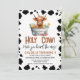 Raparigas Highland Balde Vaca Impressão Convite para primeiro aniversario Vaca Santa, convite temático para uma menina que apresenta uma vaca bonita em terras altas num balde, vários balões coloridos, flores vermelhas e um padrão impressão de vaca preta no limite do convite. Este convite para o aniversário de vacas da Highland pode ser utilizado em qualquer idade.