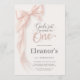 Adorable Girls Just Wanna Be One photo first birthday invitation featuring a sweet pink bow themed design. Perfect for celebrating a baby girl turning one with a playful and stylish party. The photo feature adds a personal touch to your bow themed birthday celebration. Editable text and photo. Print ready layout.