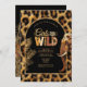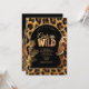 Unleash your wild side with this glamorous safari-themed bachelorette invitation. Featuring a striking leopard print background, shimmering gold palm fronds, and an intricately detailed elephant illustration, this design exudes exotic luxury. The arched frame highlights bold “Girls Run Wild” lettering in chic modern typography. The back features a sleek black background with a golden leopard peeking through palm leaves—perfect to set the tone for an unforgettable night of adventure. Fully customizable to suit your party details, this invite is ideal for a glamorous safari, jungle, or animal print-themed celebration. Search ID1148 to see other products in this fun bachelorette design set.