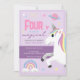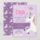 Convite Girls Unicorn Four Ever Magical 4th Birthday