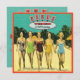 Fabulosa Festa de Getaway no Fim de Semana com um cartão postal vintage retrabalhado de um grupo de meninas bonito a passear pela praia em maiôs. Foco suave com texturas leves de um cartão postal antigo. Ilustração desenhada à mão de uma placa retrô para dar boas-vindas às suas amigas ou caras a um fim de semana excelente.