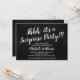 Este Convite de aniversário chic e na moda Surprise apresenta um elegante fundo preto brilhante com tipografia moderna que é excelente para qualquer idade. *Observe que isso não é uma falha real e será impresso plano.