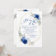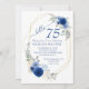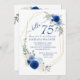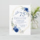 Marinho azul floral floral cinzenta convites de 75 anos com moldura de ouro para ela em bonito flores azuis.