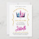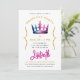Experimente a elegância feminina com o nosso belo convite à Princesa moderna para a celebração real de aniversário da sua menina. Apresentando um simples, mas encantador, motif de coroa rosa gradiente com um toque encantador, este convite da princesa da aquarela ostenta um fundo branco limpo, carência radiante e sofisticação. A coroa colorida minimalista acrescenta um toque real, complementado por textos clássicos em preto, ouro e branco para clareza e estilo. Ideal para comemorar sua princesa de uma forma caprichosa e deliciosa. Personalize com o nome da sua filha em uma bela letra rosa e eleve a magia da ocasião com este convite disponível tanto no formato de download digital como no formato de impressão.