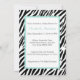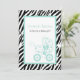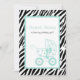 Uma impressão zebra escura e branca era um convite de chá de fraldas com uma carruagem de bebê vírgula giro, decorada com um arco feminino. Personalize este convite de uma moça de impressão digital tradicional, adicionando o nome da mãe a ser, os detalhes da festa e as informações de contato. ©OhSoGirly