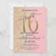 Convite Girly Modern Pink Dourado Glitter Ombre Sweet 16