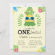 Ela é doce e divertida, sua garotinha está se tornando uma! Celebre seu primeiro aniversário maravilhoso com esse convite temático do abacaxi doce. Apresenta um fundo amarelo claro com um abacaxi feminino em óculos de sol. Os cantos são decorados com flores coloridas. Clipart de TheHappyGraphics.
