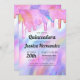 Convite Girly Unicorn Holographic Glitter Dripe Quinceañer