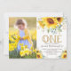 Este maravilhoso convite para o primeiro aniversario apresenta girassóis de cor d'água vibrantes e verde exuberante complementados com elegantes caracteres. Vem com um padrão floral correspondente no verso. Use os campos modelo para adicionar seus detalhes. Não se esqueça de mudar a imagem da amostra com a foto da sua pequena!