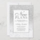 Anuncie o adiamento do seu casamento, evento ou aniversário e novos planos com este chuveiro de glitter prateado moderno, bonito e chique e ombre em mármore branco falso.