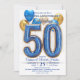 Convite Glam Blue Gold Balloons 50th Wedding Anniversary