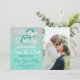 Glamoroso, chique e elegante falso brilho impresso em branco brilhante sobre um fundo verde azul-petróleo, cartão de salva-data de casamento. Este design clássico e sofisticado é perfeito para o casal que se casa, moderno e elegante. Personalize com sua própria mensagem na frente, bem como um monograma inicial personalizado no verso. Todo o design de impressão de foto.