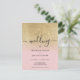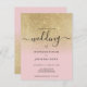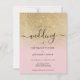 Uma elegante caligrafia manuscrita com guião preto com brilho cor-de-rosa-pincel e convites de casamento ombre com brilho dourado.
