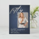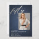 Um glamour azul e branco, denim e diamante (são efeitos digitais, não pedras reais ou folha!) foto 50º convite fotográfico para mulheres que é simples, moderno, elegante e chique, apresentando uma propagação de rochas, a palavra cinquenta em folha prata (efeito digital não folha real) e em modernos roteiro de caligrafia e tipografia em fontes modernas. Uma design de chic, elegante e moderna para uma mulher com cinquenta anos. Um design de 50º aniversário que pode ser tão versátil quanto você.