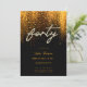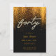 Modelo de convite de festas de vidro, moderno, elegante e chic, com fundo preto de poeira dourada (efeito digital), a palavra Fora coberta de rochas (simulação, não pedras reais, este é um efeito digital também), roteiro de caligrafia moderno e tipografia numa matiz dourada. Um design de eterno para uma mulher no seu quadragésimo aniversário.