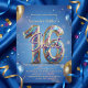 Convite Glam Royal Blue Gold Balloons Sweet 16 Birthday
