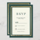 Um elegante e moderno marfim, verde florestal e convite RSVP de Casamento de luxo minimalista de ouro é perfeito para qualquer cerimônia clássica e sofisticada. Este belo design verde de ouro de glam, deslumbrante e simples, é perfeito para a moda e o casal de na moda ou para qualquer um. Personalize este design com sua própria mensagem e informações personalizadas. Todas as designs são impressas