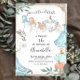Esse convite de festas mágico e encantador apresenta um tema de conto de fadas da Cinderela. O plano de fundo apresenta uma estrutura de estilo brilhante em ouro ornamentado com acentos de ramos e folhas verdes. Várias imagens do conto de fadas da Cinderela são colocadas ao redor da fronteira. O escorregador de vidro icônico é colocado na parte inferior esquerda com um lindo vestido azul de princesa à direita. À esquerda, coloca-se um relógio do estilo da abóbora com acentos de brilho dourado com uma pilha de abóbora colocada junto ao relógio. Uma grande imagem de uma carruagem é colocada no centro.
