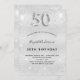 Um convite moderno, na moda e glamouroso para a 50ª festa de aniversário. Um fundo com aparência de prata falsa, decorado com poeira brilhante. Personalize e adicione o seu nome e detalhes da festa. O número 50 é escrito com uma fonte de estilo balão, script.
