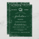 Um convite moderno e elegante para a festa de formatura. Um fundo verde decorado com falso brilho prateado, brilhos. Personalize e adicione um nome, ano e detalhes.