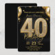 Convite Glamorous Black Gold Glitter 40th Birthday Party