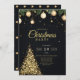 Create magical holiday memories with this show-stopping invitation showcasing a shimmering gold particle Christmas tree with elegant ornaments suspended above. The dark sophisticated background highlights the luxurious gold elements, perfect for upscale holiday celebrations, corporate galas, or elegant family gatherings seeking a contemporary festive aesthetic.
