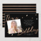 Faça uma declaração ousada e bonita com este convite de aniversário com glamour moderno. Com um impressionante fundo preto, elegantes acentos em rosa dourado e um layout de foto chic, este design é perfeito para celebrar aniversários marcantes ou qualquer reunião de aniversário com estilo. A tipografia sofisticada combinada com uma foto pessoal cria uma aparência polida e sofisticada que se sente ao mesmo tempo atemporal e contemporânea.
