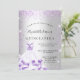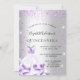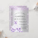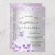 Um convite moderno, na moda e glamouroso para uma Quinceañera, festa de aniversário 15. Um fundo com aparência de prata suja com poeira brilhante púrpura e um vestido. O nome é escrito com um moderno estilo escrito à mão. Personalize e adicione os detalhes da sua festa.