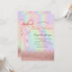 O convite para chá de fraldas bonito apresenta um boque brilhante com um arco cor-de-rosa sobre fundo holográfico. Esses convites para chuveiros de bebês são facilmente personalizados para seu evento simplesmente adicionando seus detalhes.