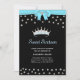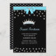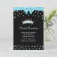 Coroa doce de diamante brilhante em 16 no Convite de festas preto. Texto pronto para ser personalizado para 15, 16ª comemoração de aniversário.