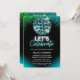 Convite de aniversário retrô com uma bola de discoteca turquesa brilhante com glitter verde azul em um fundo preto. Perfeito para a sua festa retrô de discoteca, este convite irá definir o tom para uma celebração divertida e memorável.