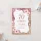 Fundo brilhante rosa dourado falso e floral cor-de-rosa pincelado com script "70 e fabuloso" nos convites de festas de aniversários central, elegante e na moda, 70 excelente.