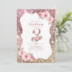 Frente rosa dourada brilhante falso e cor-de-rosa pincelada com três grandes no centro, elegante e na moda, excelente e aniversário de 3 anos convites para meninas.