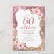 Fundo brilhante rosa dourado Faux e floral cor-de-rosa pincelado com script "60 e fabuloso" no centro, elegante e na moda, excelente 60º convites de festas de aniversários.